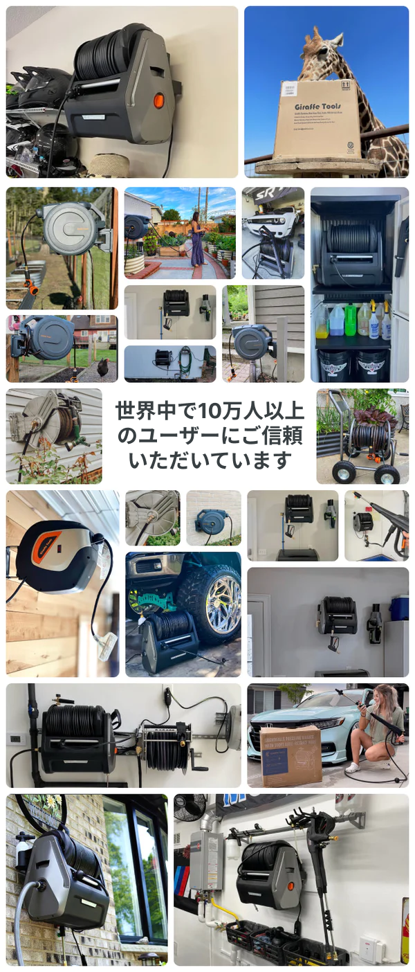 ジラフ ツールズは、世界の格納式ホース リールおよび高圧洗浄機市場のリーダーです。 Giraffe Tools はシンプルな目標を持って設立されました。 車の修理から大掃除、庭の手入れまで、かつては面倒だった重労働や吊り上げ作業をなくすことです。当社は、最高の製品を作成するために一貫した革新と改善に取り組んでいます。そのため、骨の折れる作業をせずに、その成果を享受できます。 面倒な作業は私たちにお任せください。