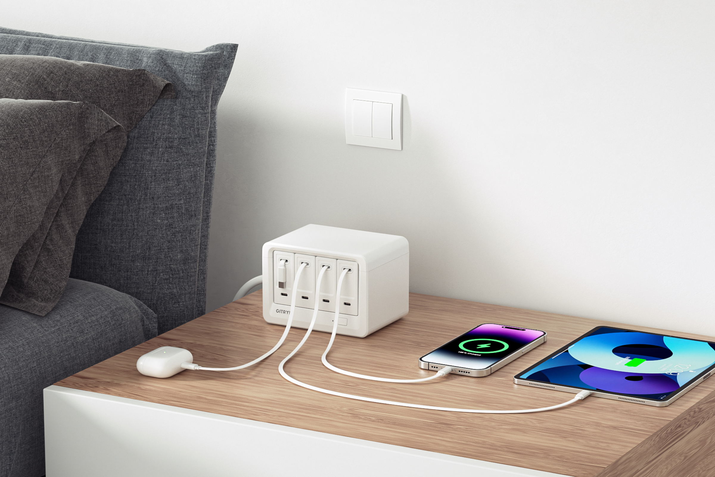 - この充電ソリューションは、自宅・オフィス・旅行先など幅広いシーンに最適です。4つのACコンセントと4つのType-Cポートを備えた組み合わせで、最大12台のデバイスに同時給電可能。ノートパソコン、スマートフォン、タブレットなどにぴったりです。