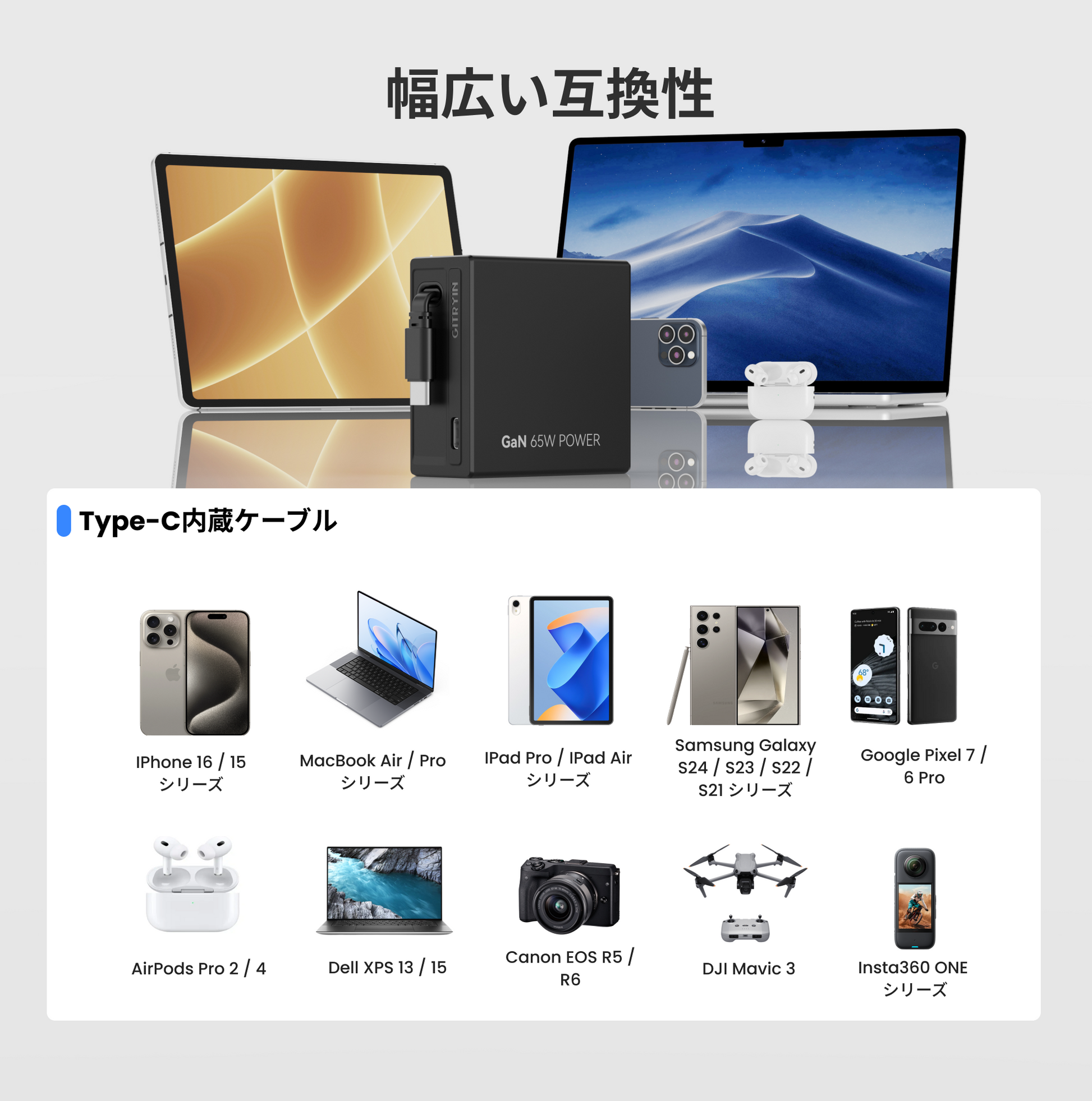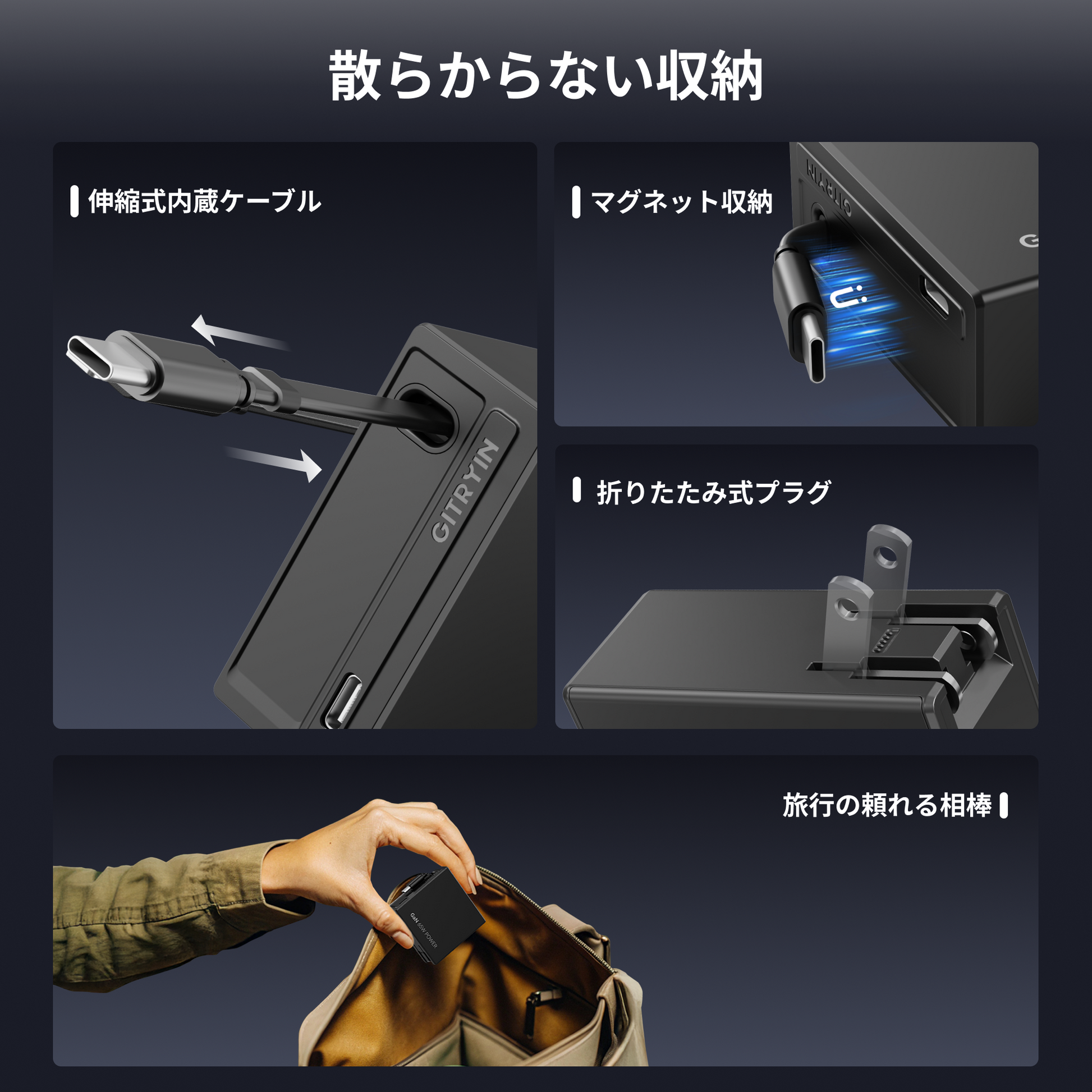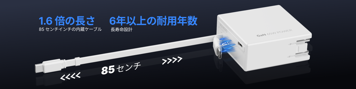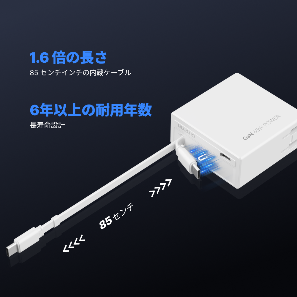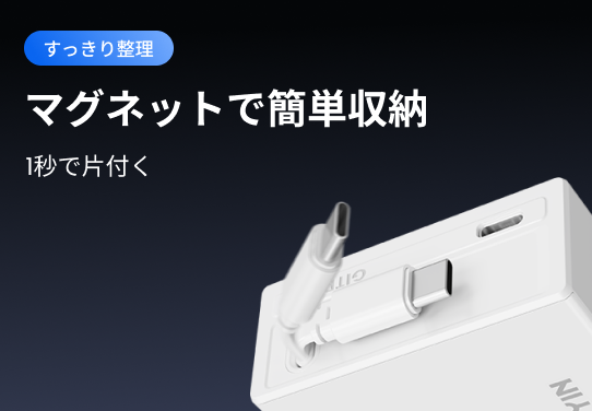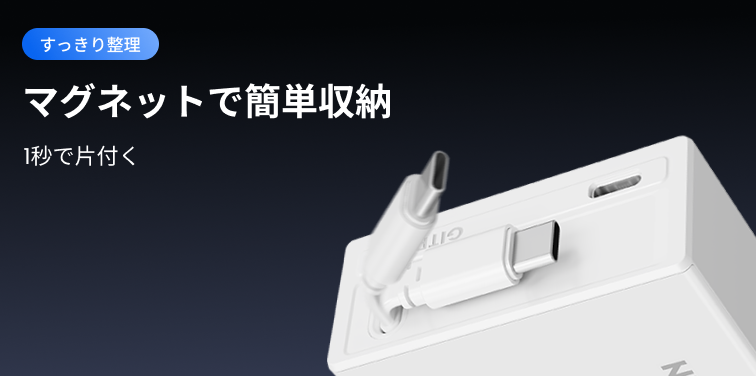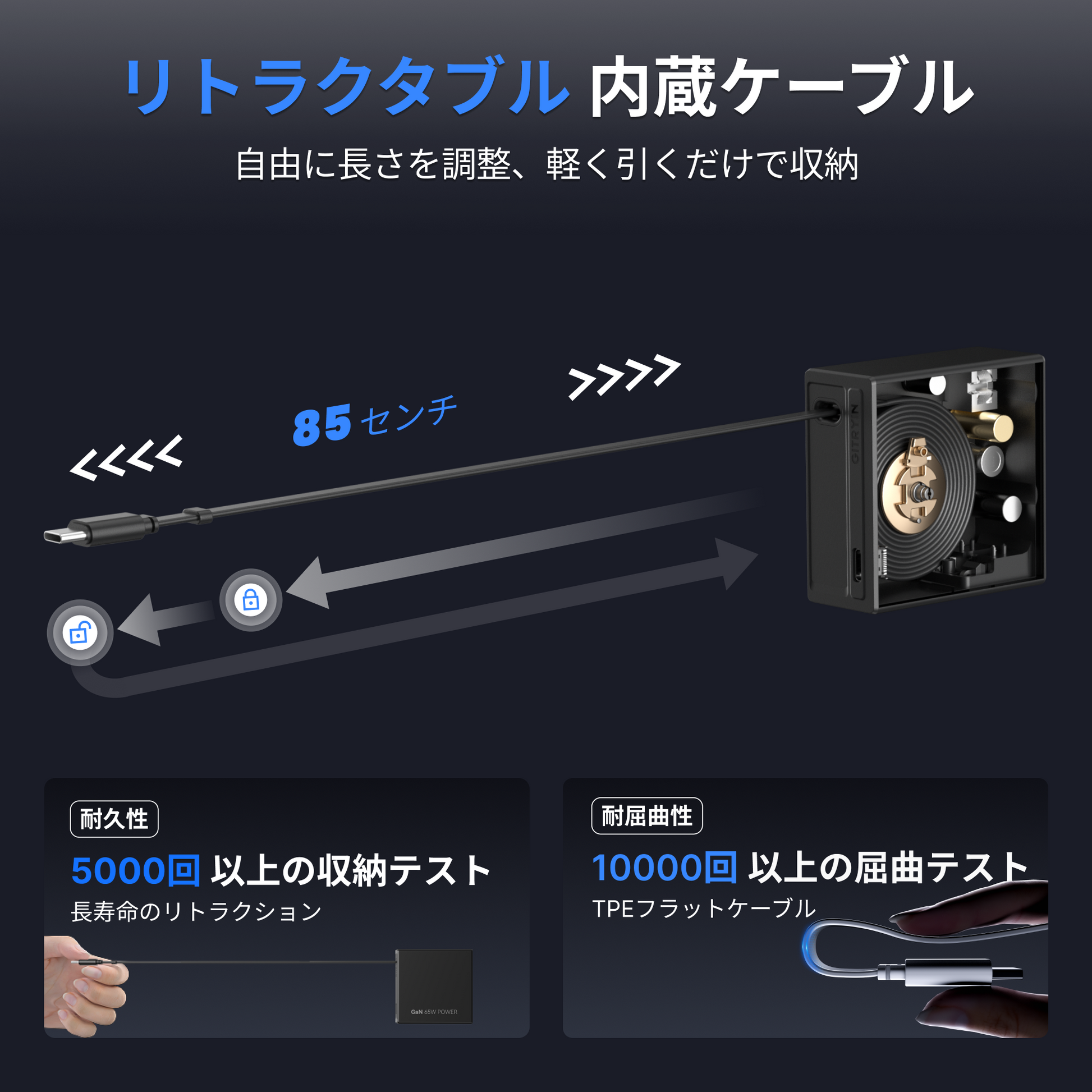 コンパクトで軽量なデザインに、内蔵された高品質ケーブルを搭載。絡まるケーブルや断線の問題を解消し、効率的で省スペースな便利さを提供します