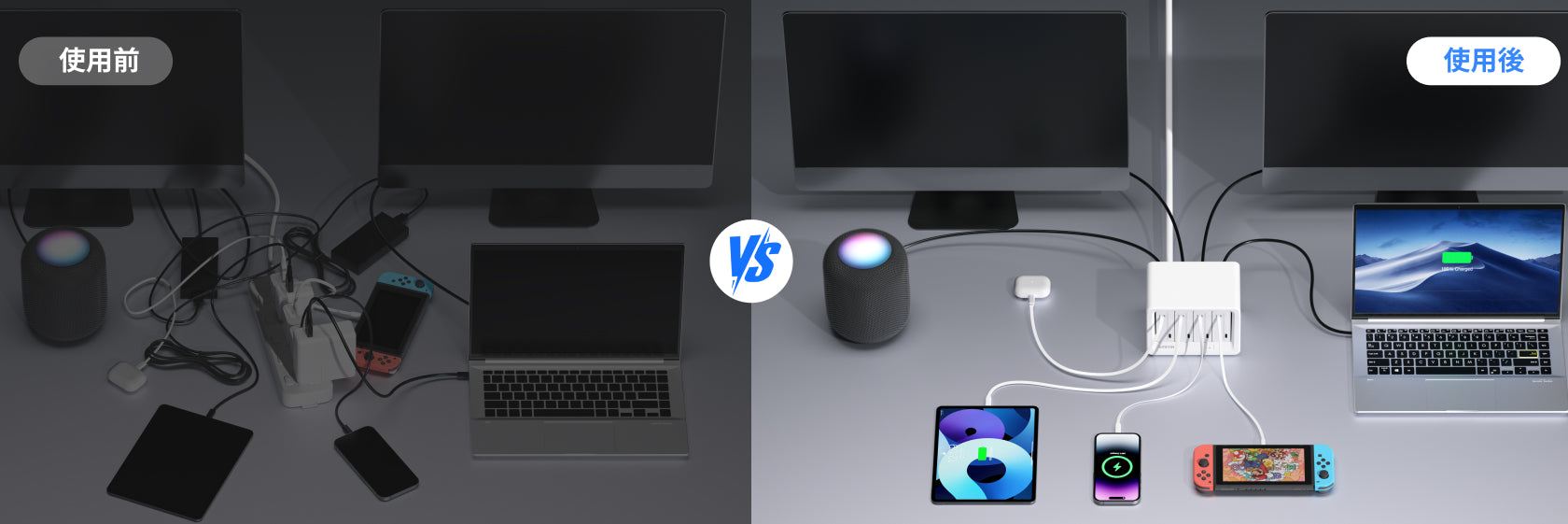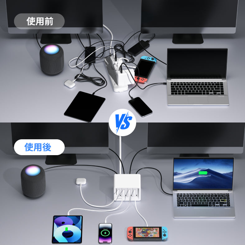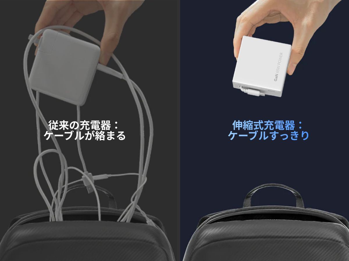 スペースを節約する充電器は、従来の充電器のかさばりや手間を減らし、ケーブルのねじれや乱雑さを防ぎます。