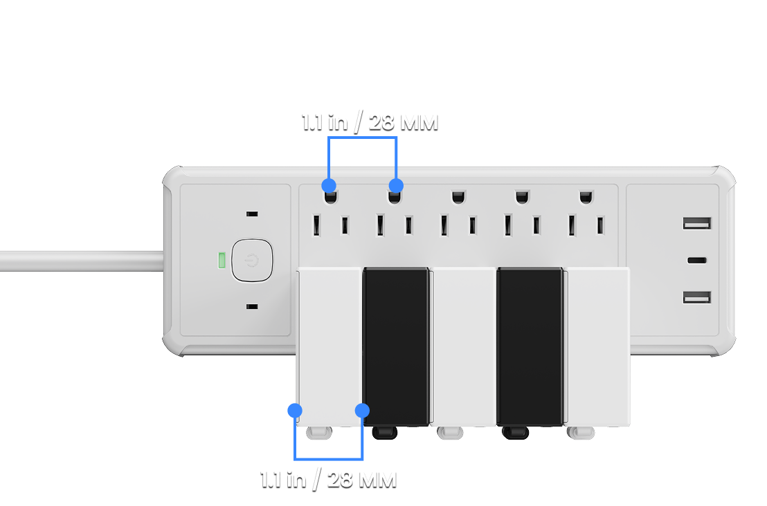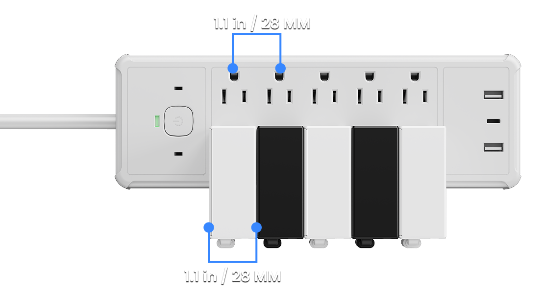 厚さわずか 28mm のスリムでコンパクトなデザインで、標準的な電源タップやコンセントにぴったりフィットし、ソケットスペースを効率的に最大化します。コンパクトで混雑したスペースに最適です