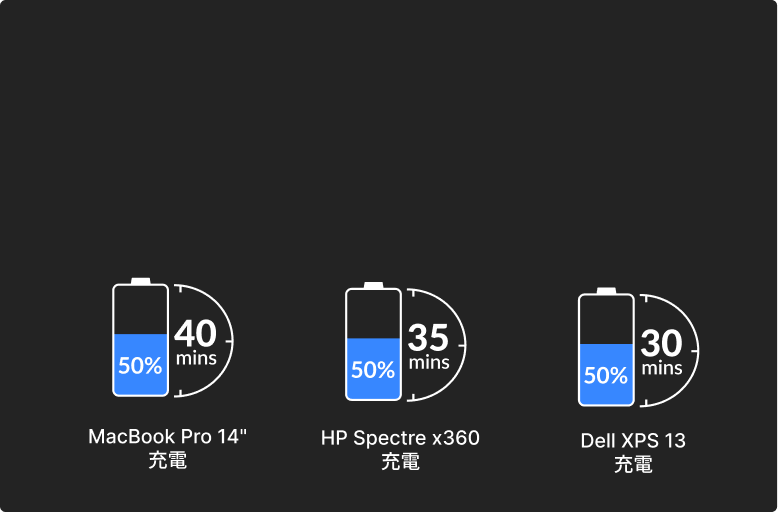 高性能チャージャーで、素早く充電。集中力を途切れさせない